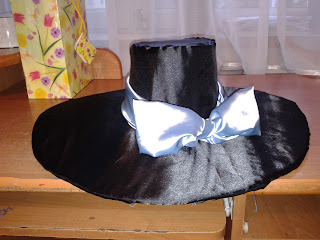 Oto on: kartonowo - satynowy kapelusz, z rondem usztywnionym drutem (takim zwykłym, nie modniarskim)