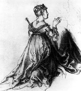 Tak więc sukienka się szyje, a ja w przerwach staram się znaleźć jakieś portrety, obrazy na których widać suknie w podobnym stylu i czytam sobie M. Gutkowską - Rychlewską, żeby czegoś więcej się na ten temat dowiedzieć. Aha, próbuję też stworzyć siatkę na włosy - taka moja obsesja już od paru lat, kocham ten dodatek, zarówno w wersji średniowiecznej, renesansowej i tej z lat 40. XX wieku.