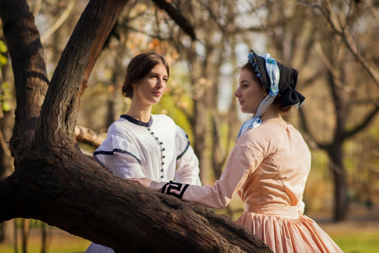 Suknia i krynolina przetrwały wyprawę do Krakowa i sesję zdjęciową (obejmującą wspinanie się na stromą górkę po jakiś korzeniach). Co prawda w drodze powrotnej zaatakowała mnie rynna, kiedy przechodziłam chodnikiem i lekko uszkodziła naszyty wzorek. Wzór, na którego punkcie rozwinęłam niezdrową obsesję (cóż, naszywałam go ręcznie jakieś 3 dni) i utworzyłam sobie nawet tablicę na Pinterest mu poświęcona.