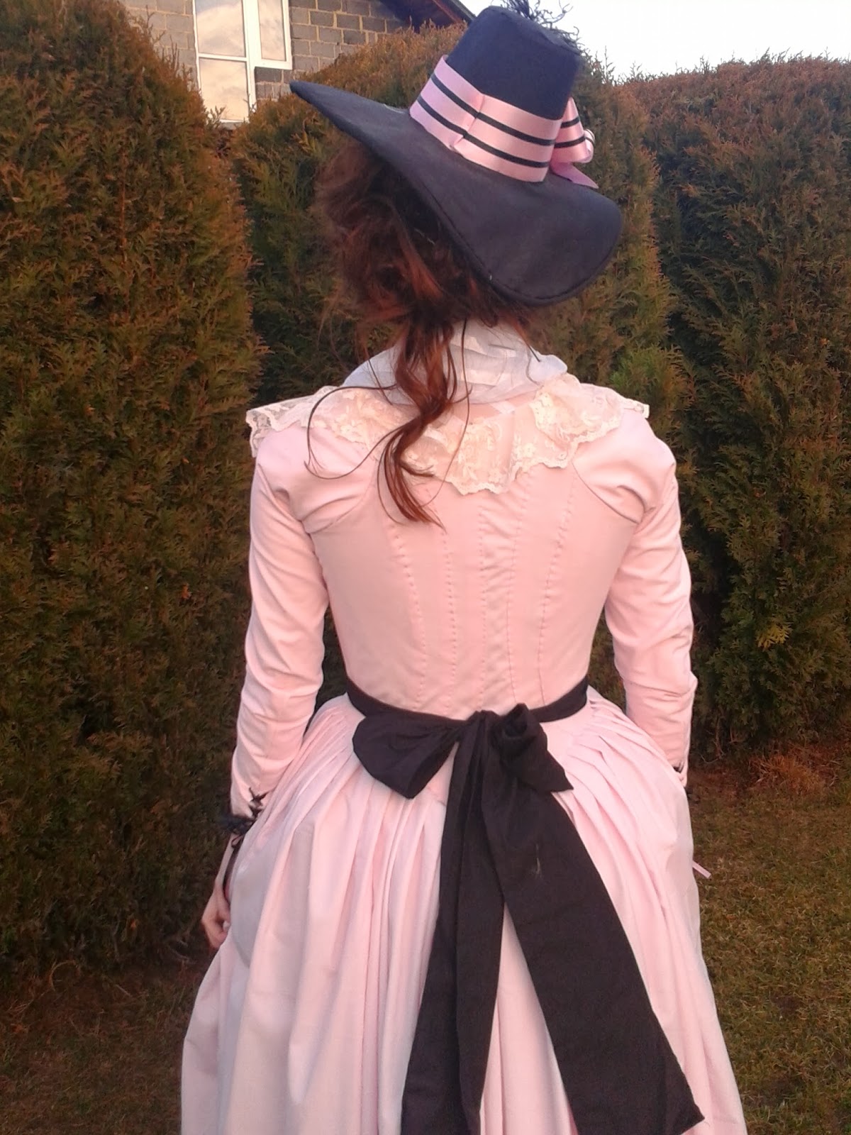 Elu, wyglądasz fantastycznie w tej round gown! To chyba mój jeden z ulubionych Twoich projektów, ten wyblakły róż w połączeniu z czernią komponuje się świetnie: poza tym wszystkie dodatki, koronki, zdobienia rękawów są idealne. Podziwiam Twoje wyczucie! Naprawdę to cechuje tylko rasowe rekonstruktorki ;) A z 3. zdjęcia powinien powstać twój obraz :)