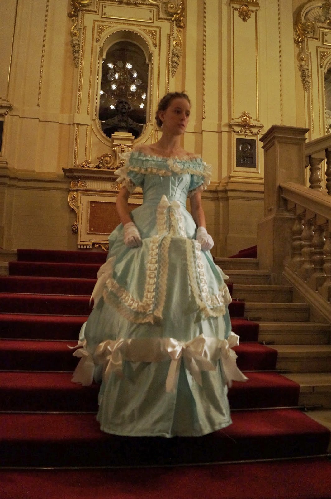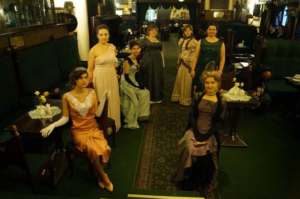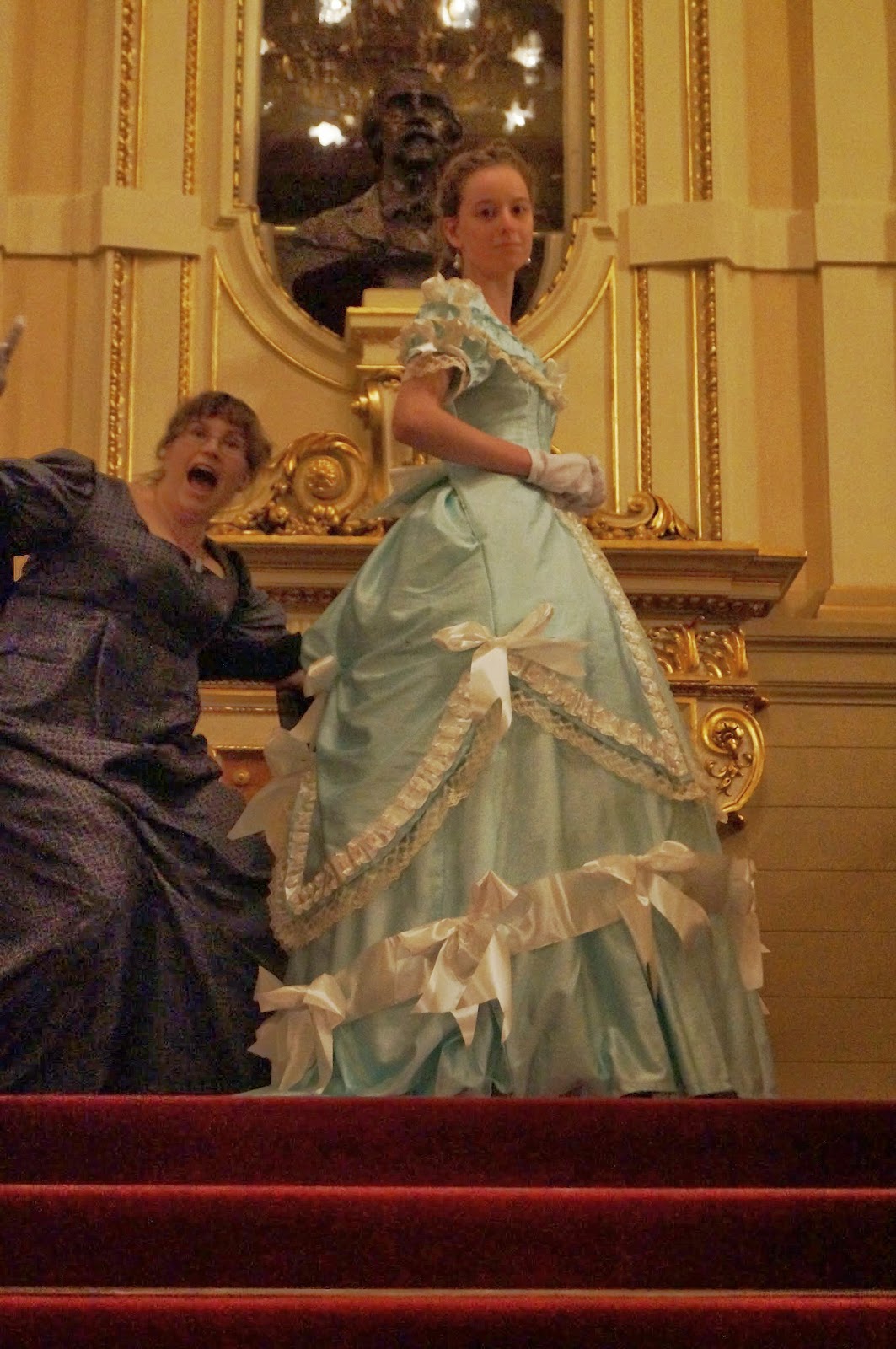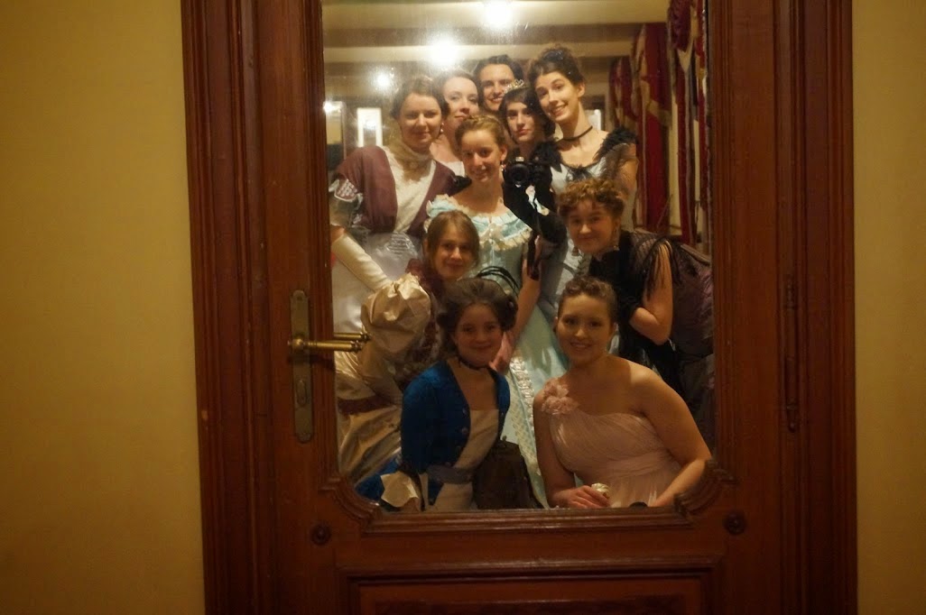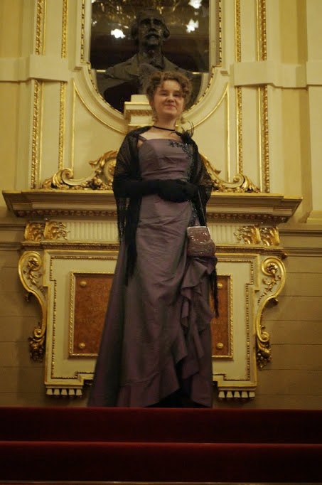 W teatrze towarzyszyła mi siostra. Miałam problem z kostiumem dla niej. Odmówiła założenia nieśmiertelnej regencyjnej sukienki ze złotymi dodatkami więc stanęło na tym, że będzie coś nowego.