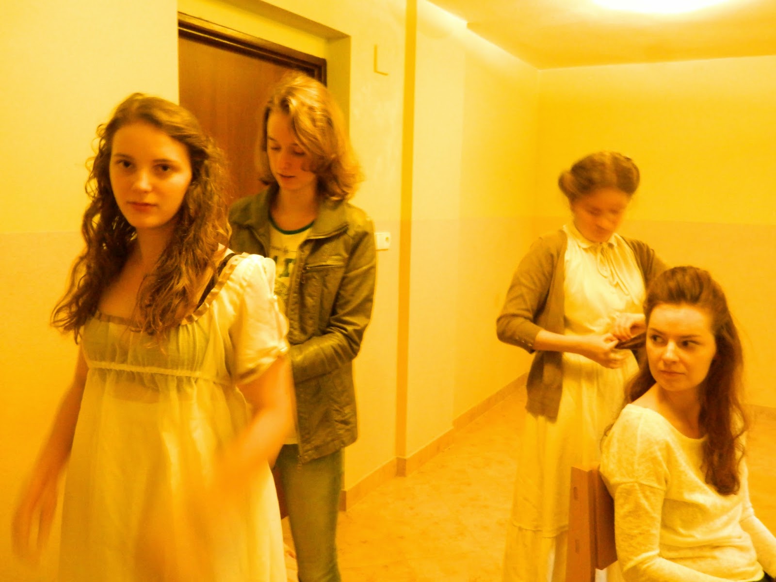 Jakiś czas temu Gabrielle napisała do mnie z prośbą o wypożyczenie kilku sukien na organizowany przez nią pokaz mody. Trochę w ciemno zgodziłam się, potem obiecałam że pojawię się sama a nawet zaciągnę ta siostrę i jej koleżankę Basię. Ostatecznie miałam wakacje, a przebieranie się w suknie jest zawsze miłe i zabawne. Miałam się tylko stawić w Krakowie o 11 na miejscu zbiórki.