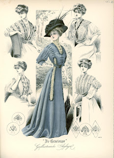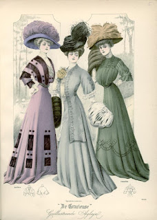 Due to my indeciveness it was very difficult to make a dress for 1900s event. I love that era so picking one dress out of so many beautiful things was almost impossible. I finally settled on something form 1908 since I liked the silhouette so much but still, my pinterest board reached 1000 pins :P Even after I cut it down to almost 100 pictures on my hard drive I wasn't very close to solving my little decision-making problem.