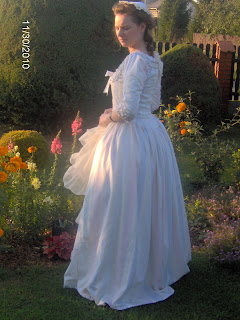 Tak w ogóle, to Georgiana Cavdendish urodziła się w 1757r, a za mąż wyszła w 1774r i mniej więcej z tego okresu pochodzi suknia.