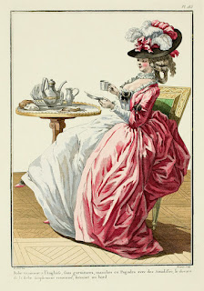 Wiem, że miałam zajmować się czymś innym i uszyć wreszcie prawdziwą suknię barokową (nie wiem dlaczego, ale ludzie najczęściej przez to hasło trafiają na mojego bloga) ale plany się zmieniły. Przez przypadek znalazłam parę rycin z XVIII wieku: