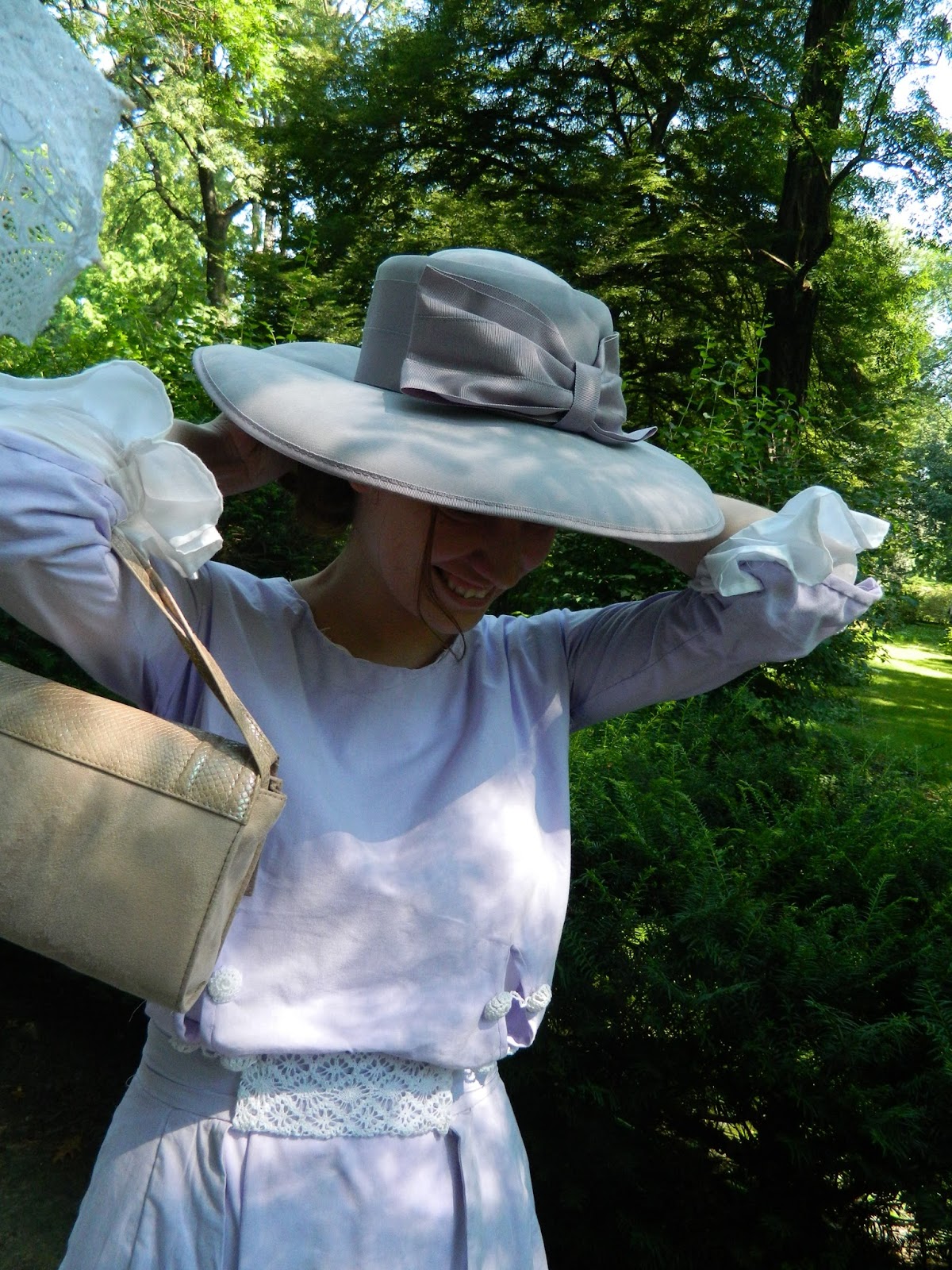 I fishished my 1910 lavender dress (which, as I was told is half-mourning colour). I even made collar but it landed in my purse almost immediately.
